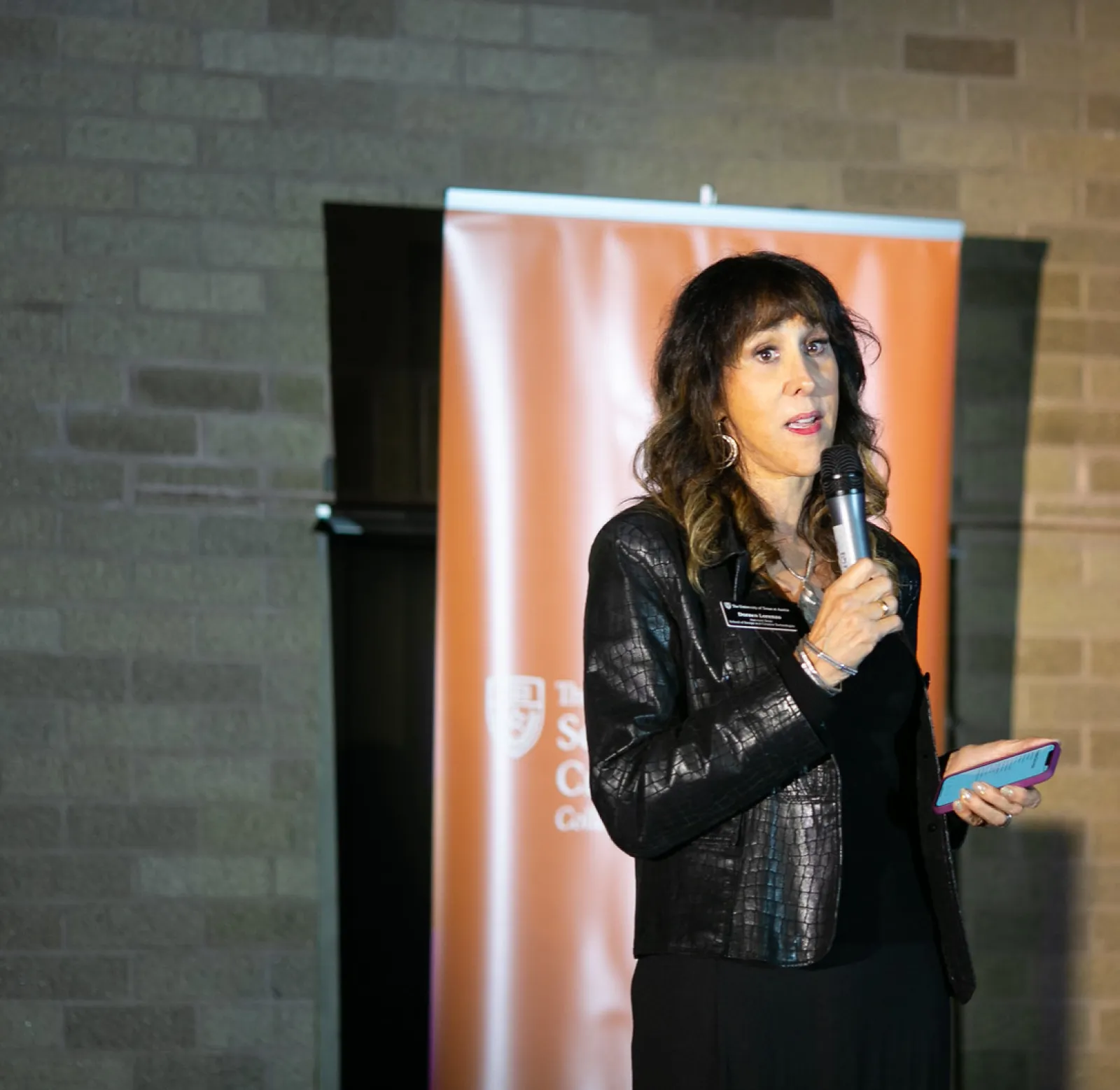SDCT Assistant Dean Doreen Lorenzo speaking at the 2021 Austin Design Week Opening Night event at UT Austin