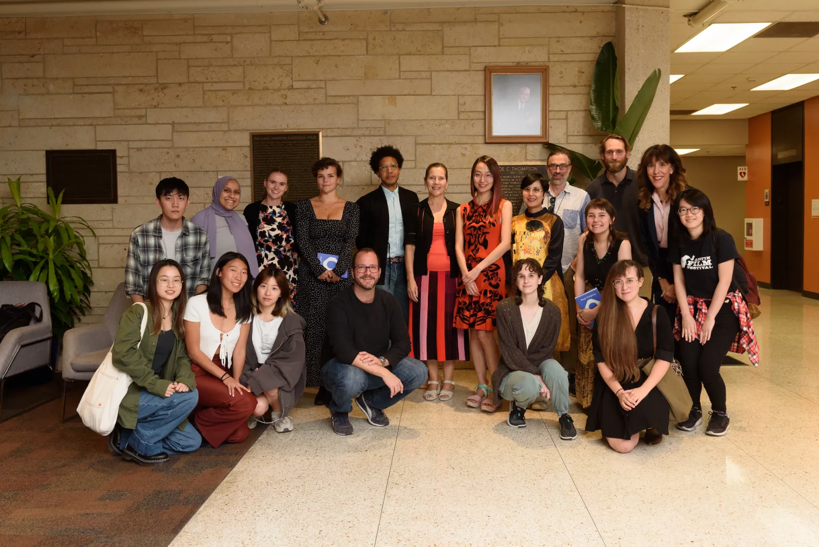 SDCT faculty staff and students smiling with guest speaker Paola Antonelli after her lecture
